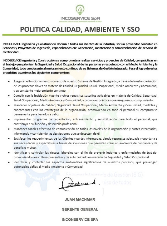 El aspecto seguridad, es un elemento importante de nuestro trabajo, lo que nos lleva a no descuidar la supervisión y el fiel cumplimiento de las normas establecidas por empresa mandante, aparte de nuestro propio plan de trabajo.